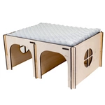 Ażurowy domek z wodoodpornymi poduchami w liście na czarnym tle FLOP dla szynszyli