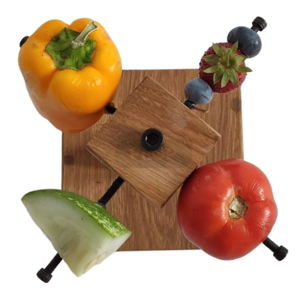 Produkt wykonany jest z drewna impregnowanego olejem kokosowym. Elementy stalowe zabezpieczone się przed rdzewieniem. Końcówki pręcików do wieszania warzyw i owoców są odkręcane.