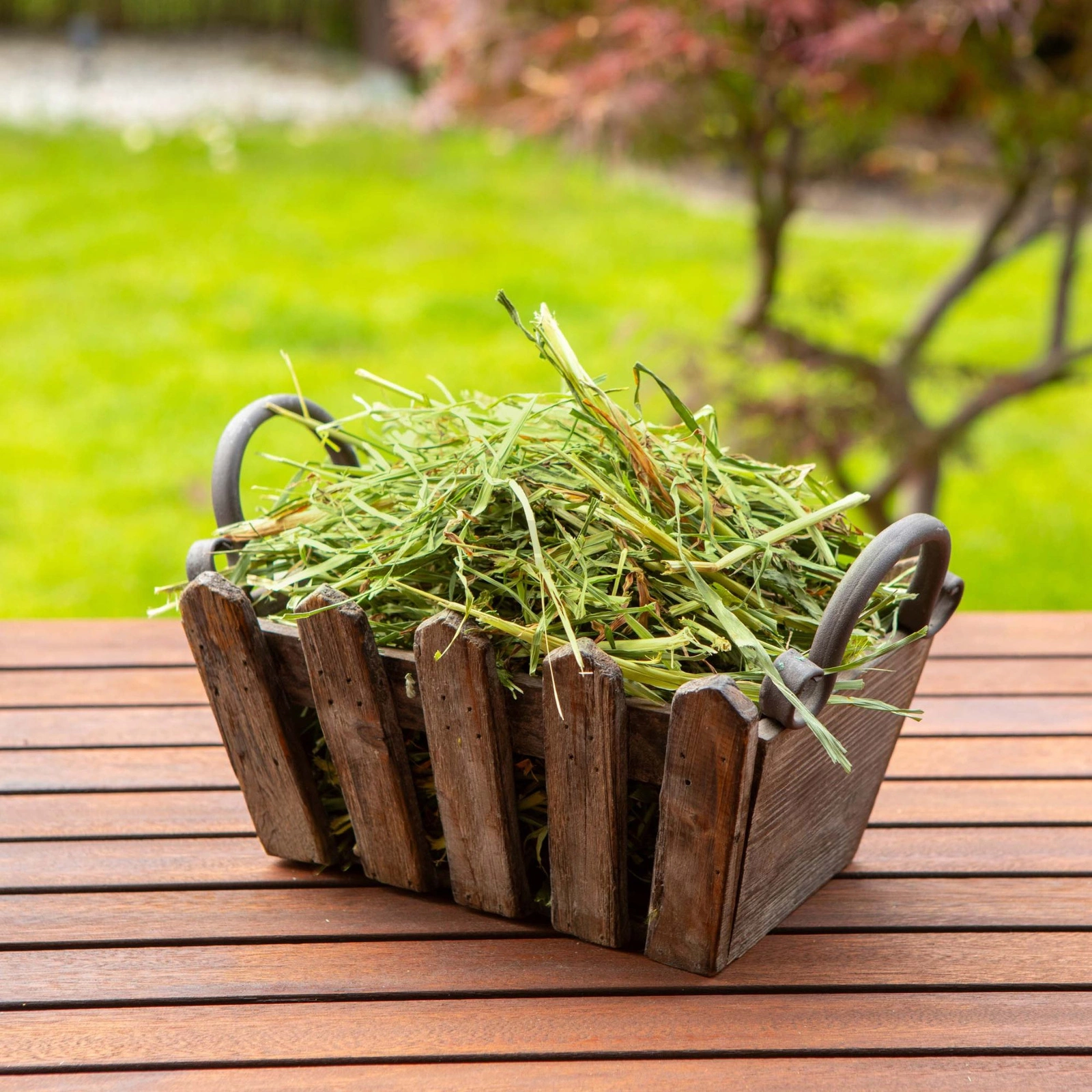 Długie źdźbła wspomagają ścieranie stale rosnących zębów i wspierają funkcje trawienne. Aromat i struktura trawy pobudzają naturalne instynkty żucia i eksploracji.