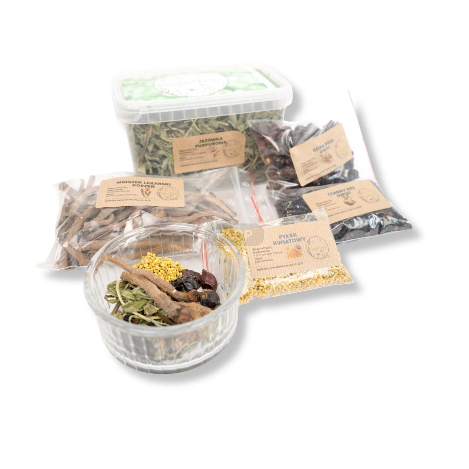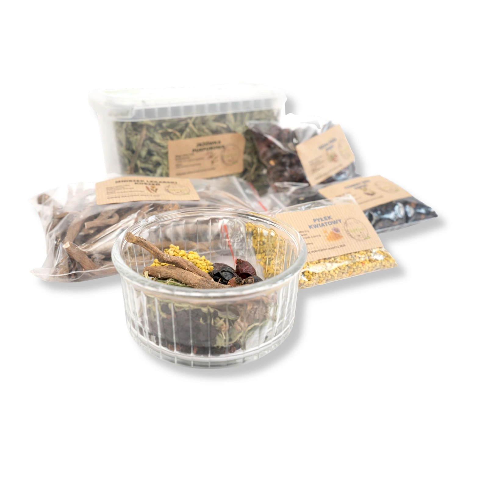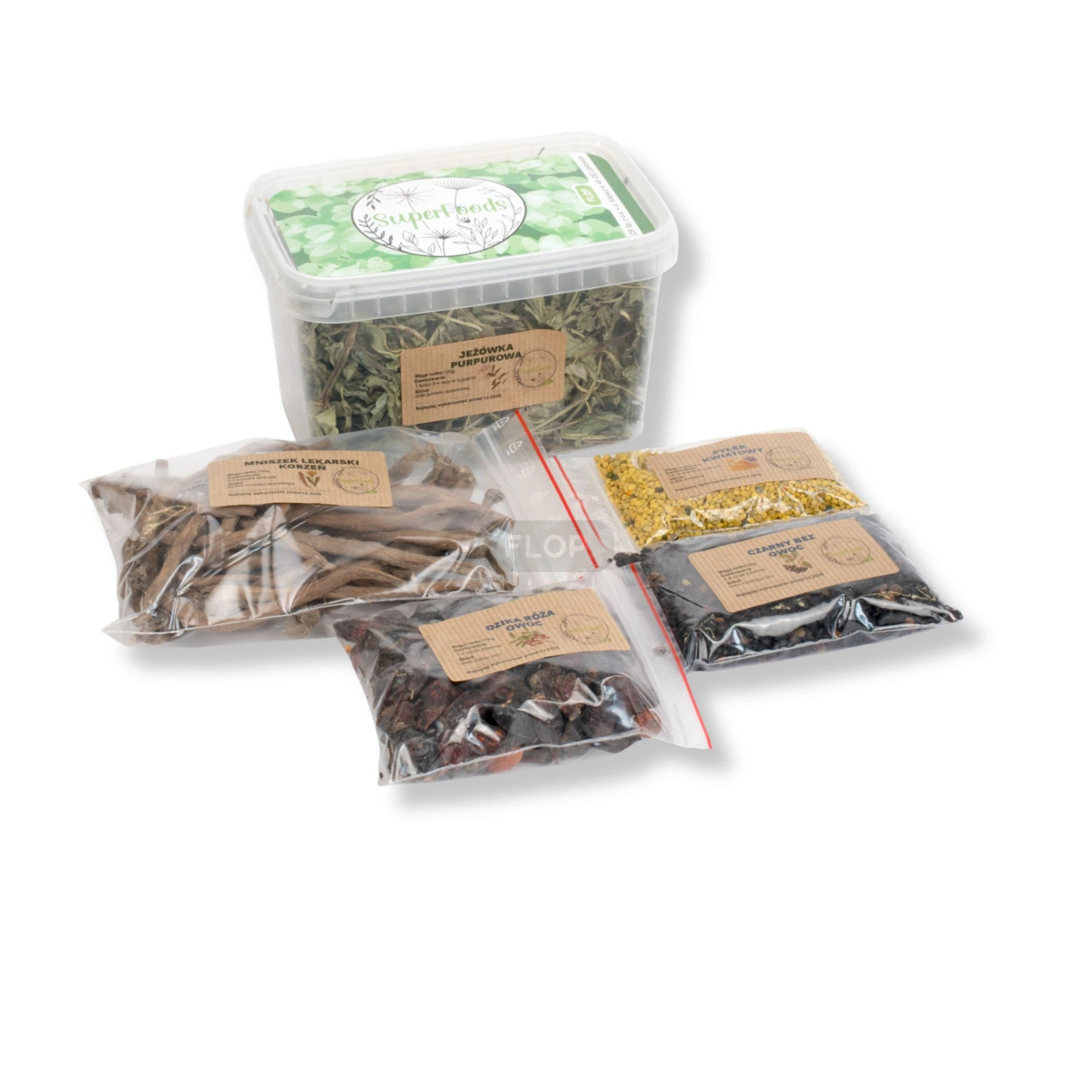 Królicza odporność potrzebuje wsparcia – szczególnie, gdy pogoda płata figle albo organizm jest nieco osłabiony. Ten zestaw to pięciu naturalnych superbohaterów, którzy razem tworzą prawdziwą tarczę ochronną dla Twojego uszaka.
