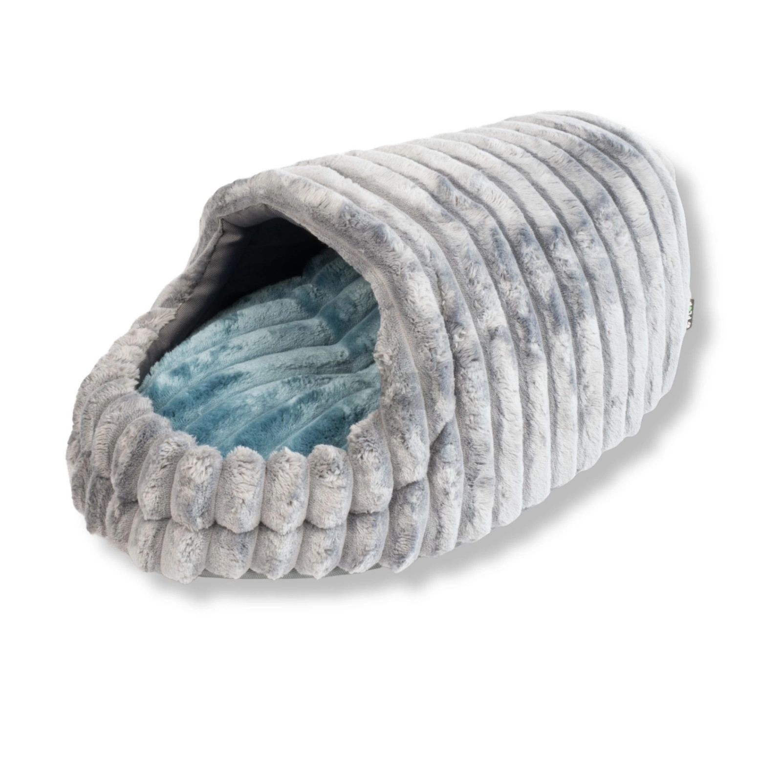 Wierzchnia część budki została uszyta z miękkiego polaru minki stripes, niezwykle przyjemnego w dotyku i atrakcyjnego wizualnie. Paski na tkaninie mogą układać się równolegle lub prostopadle do dłuższego boku – układ jest losowy i każda budka ma dzięki temu unikalny wygląd. W środku znajduje się duża poducha – od góry obszyta tym samym polarem, od spodu zabezpieczona wodoodporną kodurą. Dzięki temu w codziennej pielęgnacji możesz wyprać samą poduszkę, a domek pozostaje świeży i czysty.