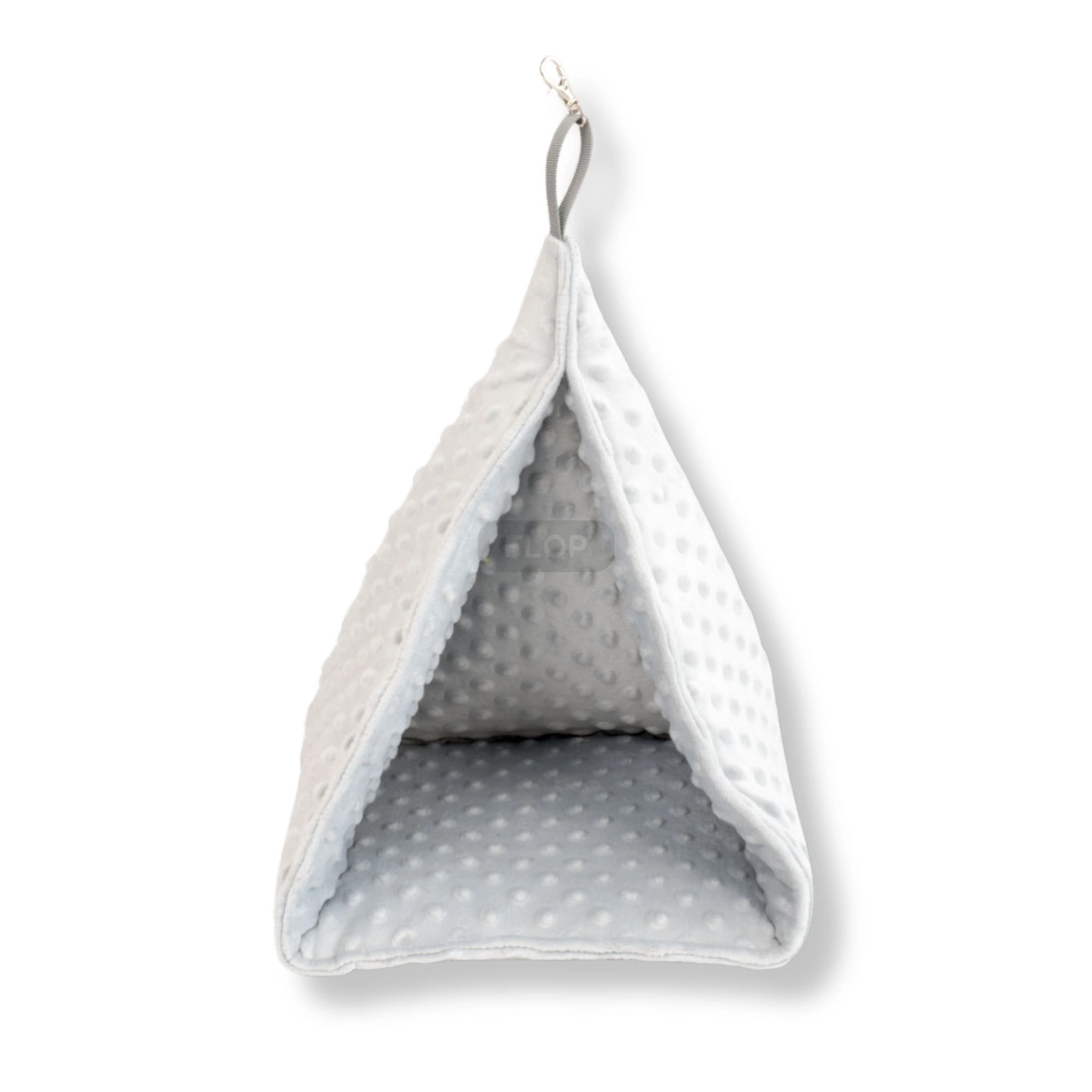 Wisząca piramida - domek z szarego polaru minki dla szynszyli