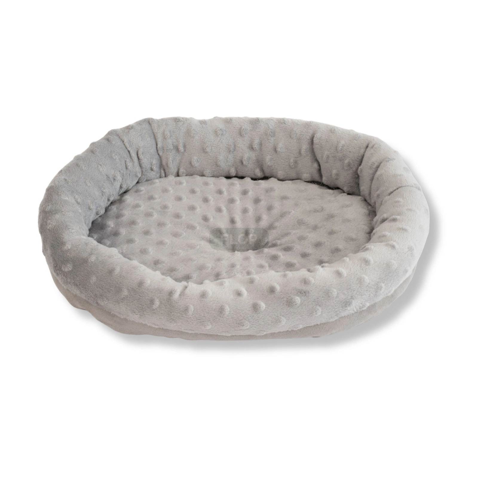 Wierzch wykonano z przyjemnego w dotyku polaru minki z wypukłymi kropkami, który jest trwały, miękki i łatwy w utrzymaniu czystości. Wnętrze wypełnia delikatna owata, zapewniająca sprężystość i izolację od chłodnego podłoża. Legowisko zachowuje kształt, a jego elastyczny brzeg tworzy wygodne oparcie, które pozwala zwierzętom wtulić się i odpocząć w pełnym komforcie.