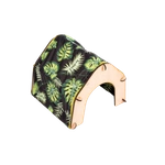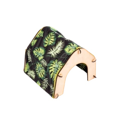 Ażurowy domek z wodoodpornymi poduchami w liście na czarnym tle FLOP dla szynszyli